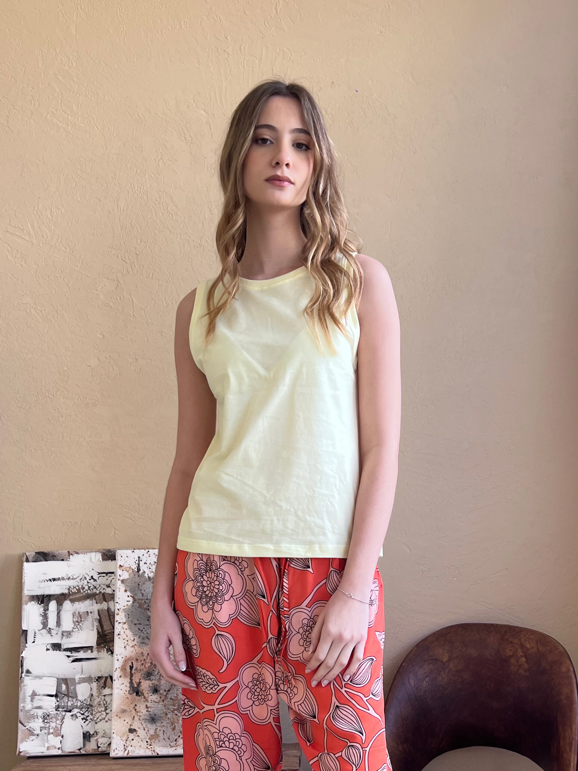 Musculosa en jersey algodón con puño en ribb. Cuello redondo y largo hasta la cadera.