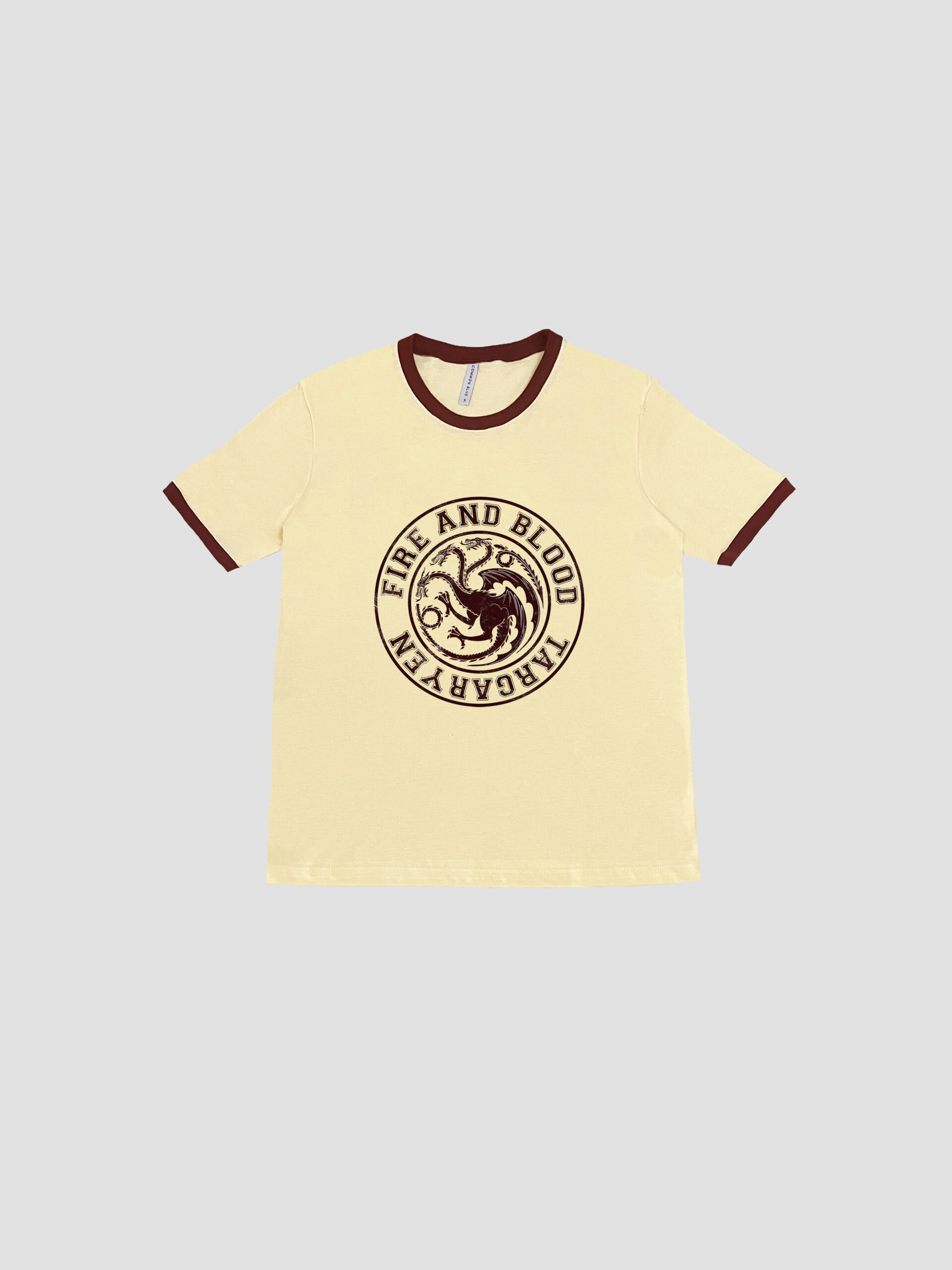 Remera básica manga corta con cuello y puño en ribb. Detalle de estampa en el delantero.