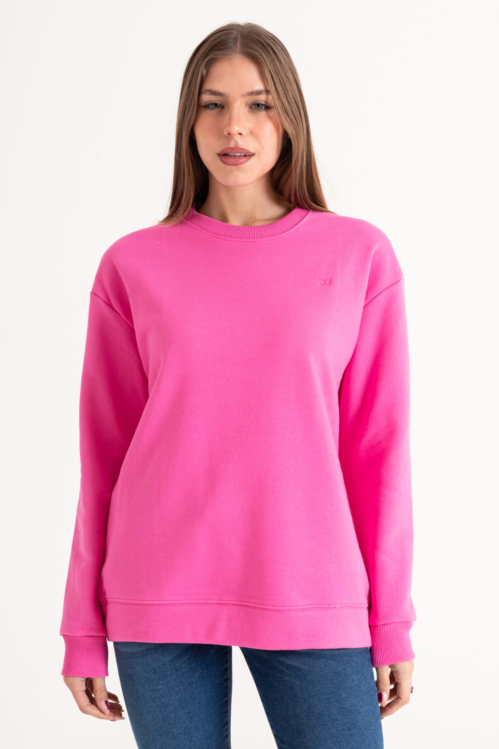 Buzo ancho de frisa manga larga con cuello redondo. Cuello, bajo y puños en morley. (Diferentes tipos y ubicaciones del logo)