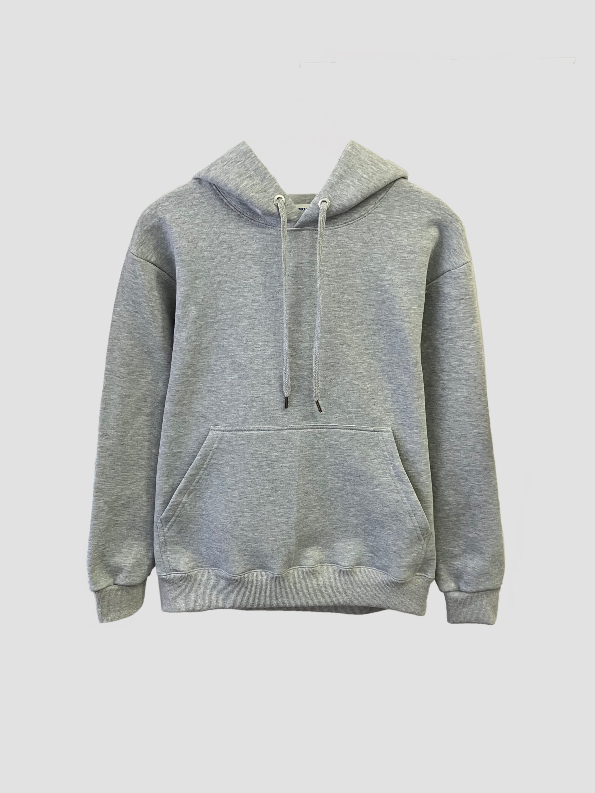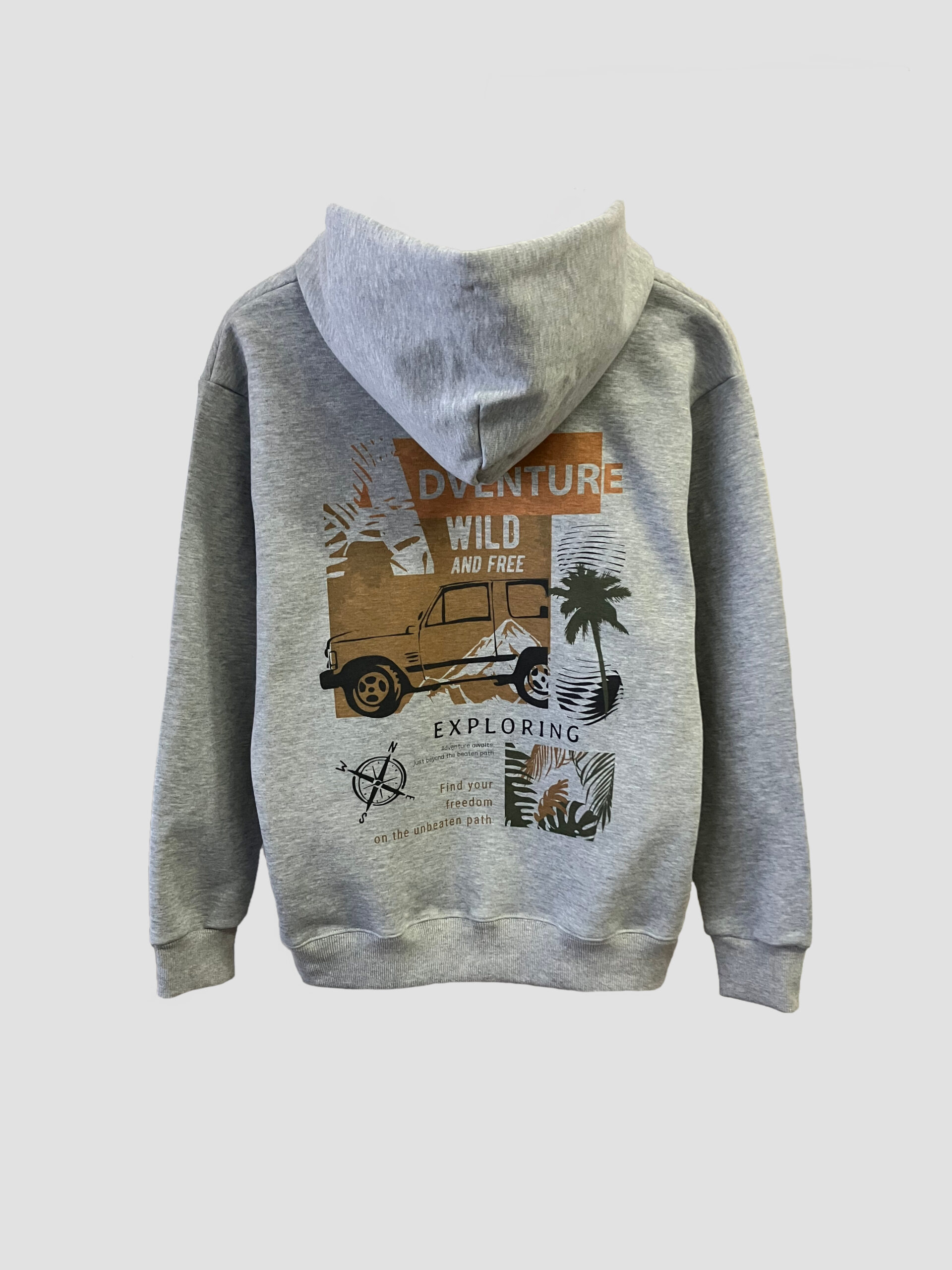Buzo ancho de frisa manga larga con capucha y cordones ajustables. Bajo y puños en morley. Detalle de estampa en la espalda.