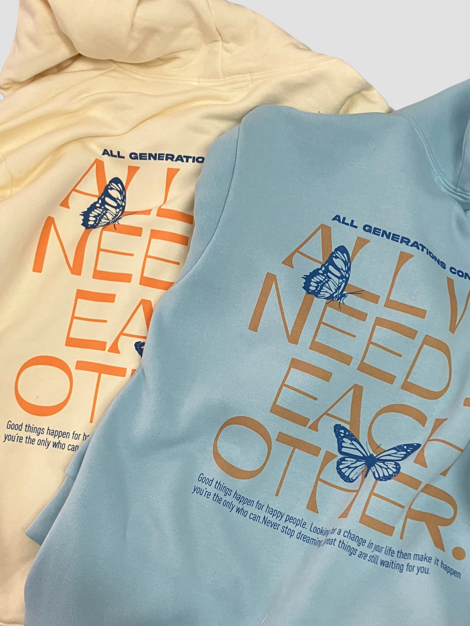 Buzo ancho de frisa manga larga con capucha y cordones ajustables. Bajo y puños en morley. Detalle de estampa en la espalda.
