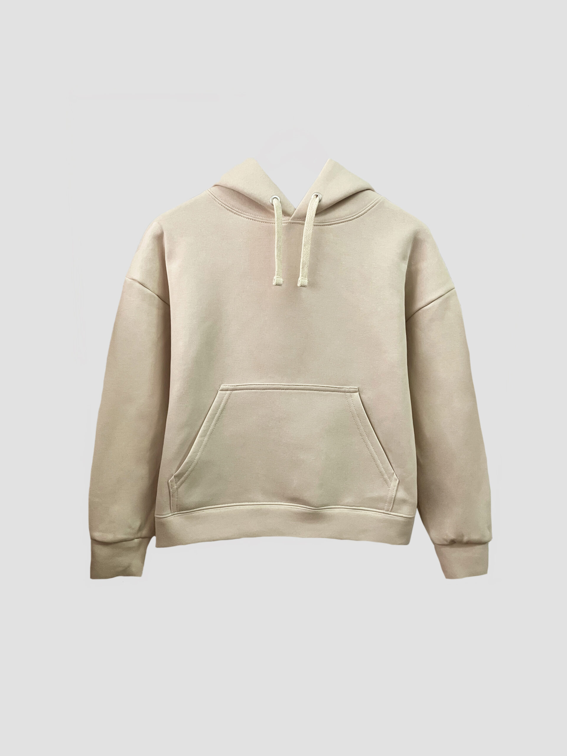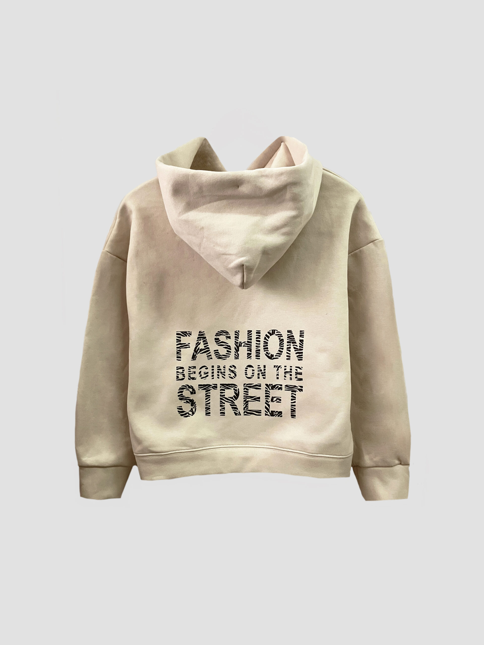 Buzo corto de frisa con capucha, cordón de ajuste y bolsillo en el delantero. Detalle de estampa en la parte inferior de la espalda.