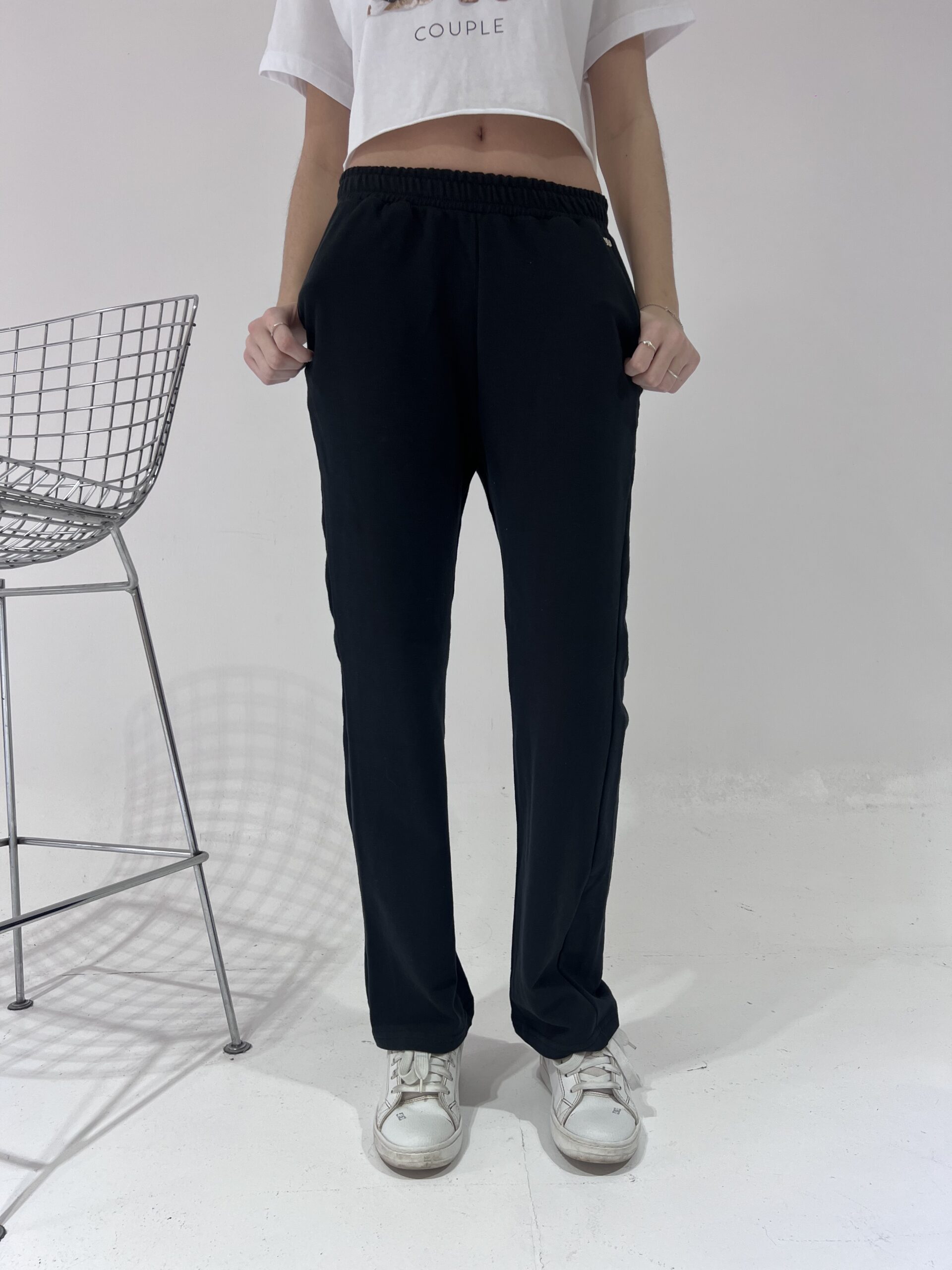Jogging recto con cintura elástica, bolsillos en los laterales y bajo con ruedo.