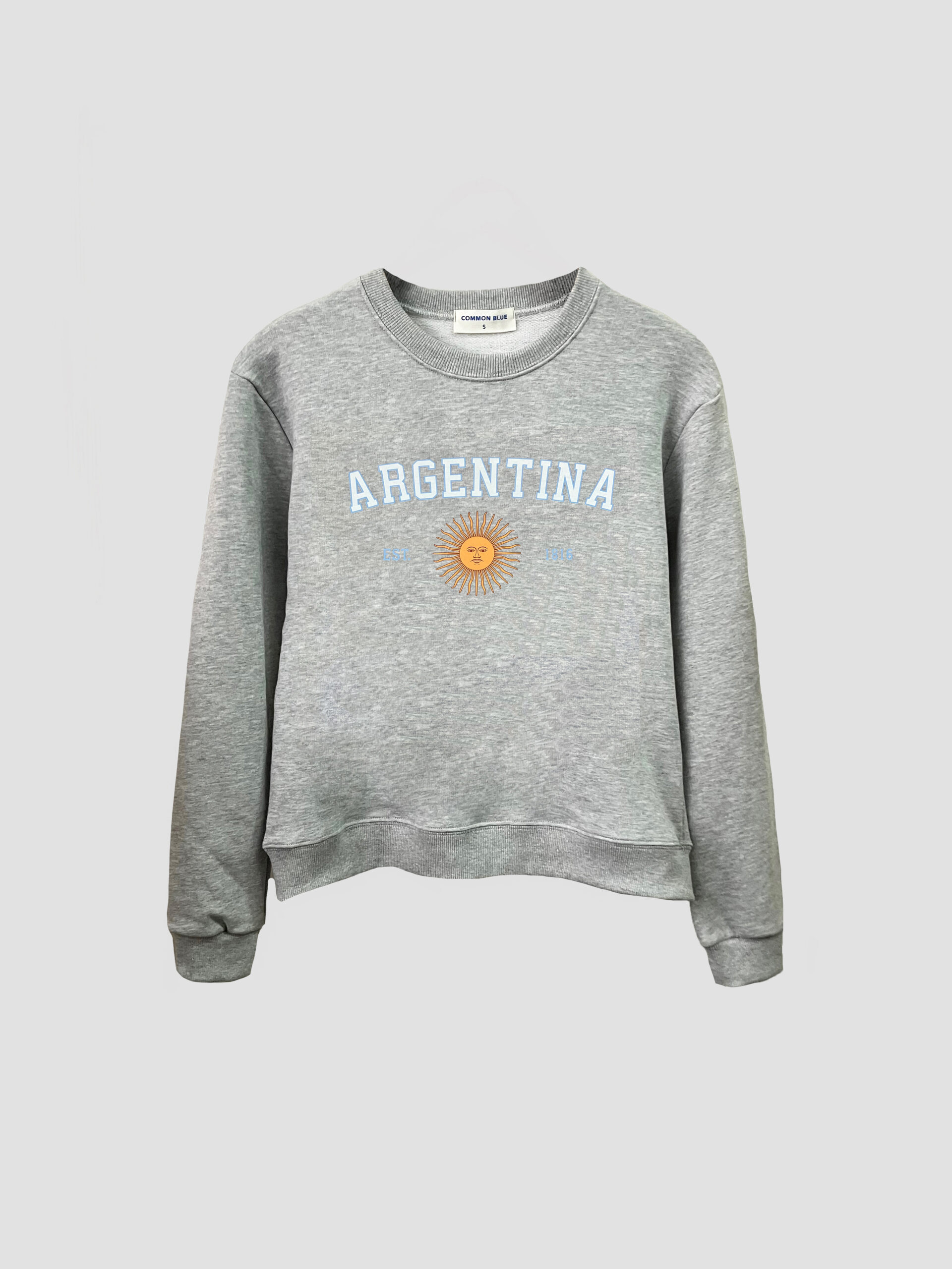 Buzo básica manga larga con cuello, bajo y puños en morley. Detalle de estampa en el delantero.