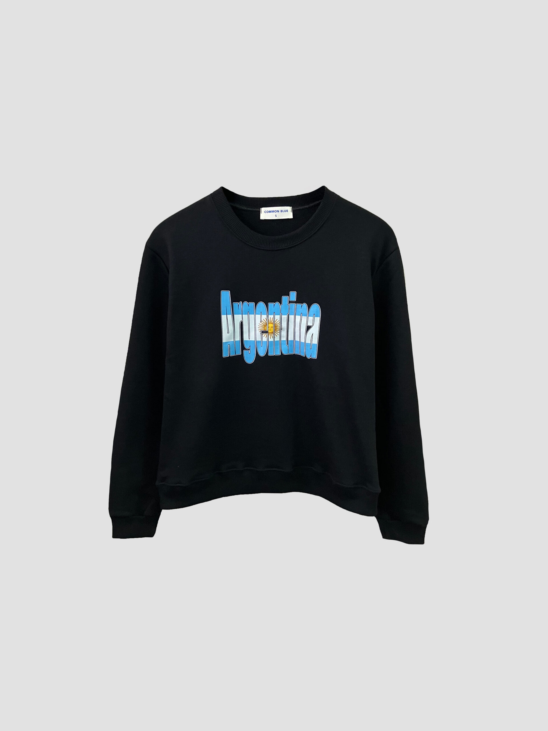 Buzo básico manga larga con cuello, bajo y puños en morley. Detalle de estampa en el delantero.
