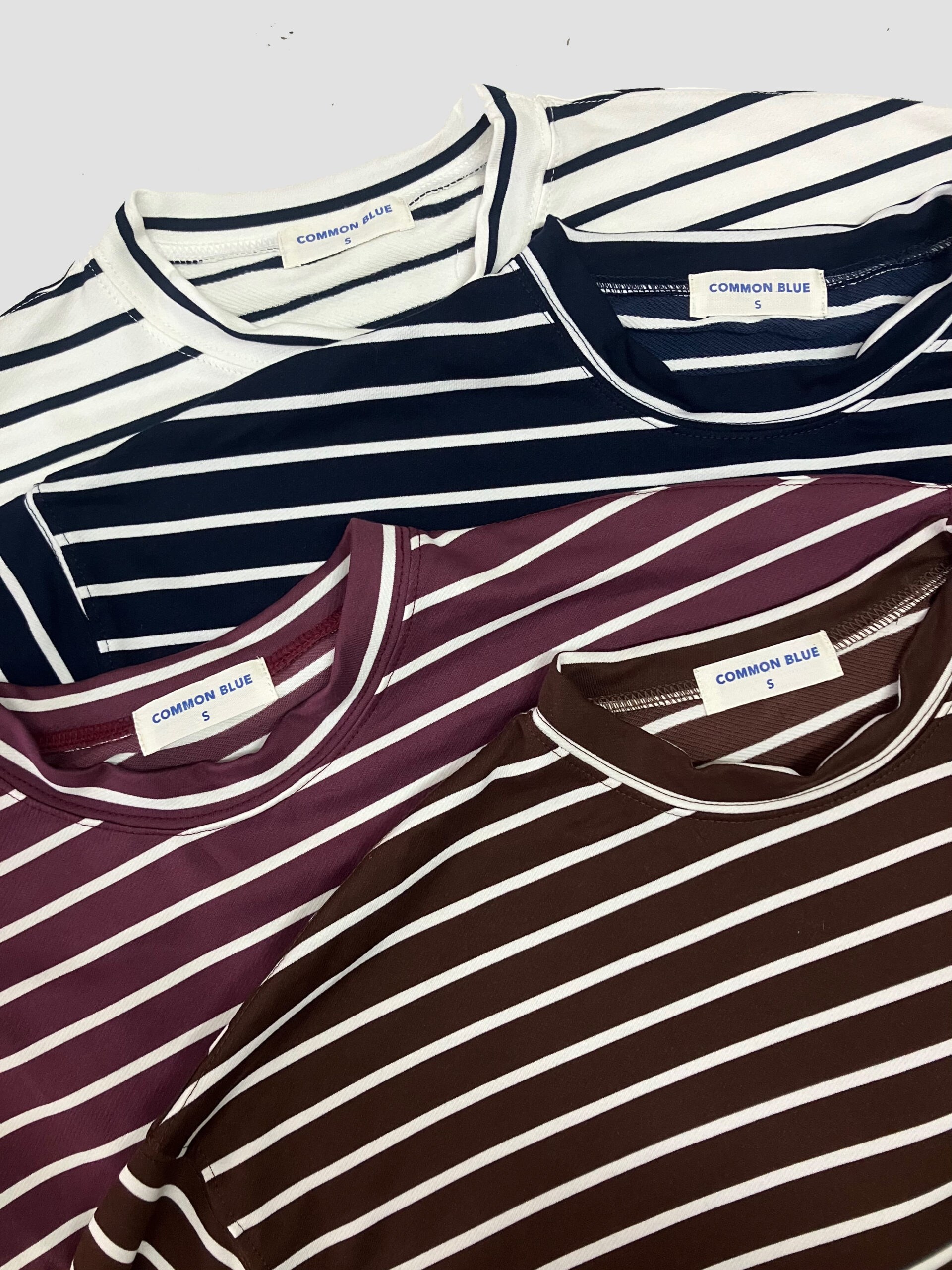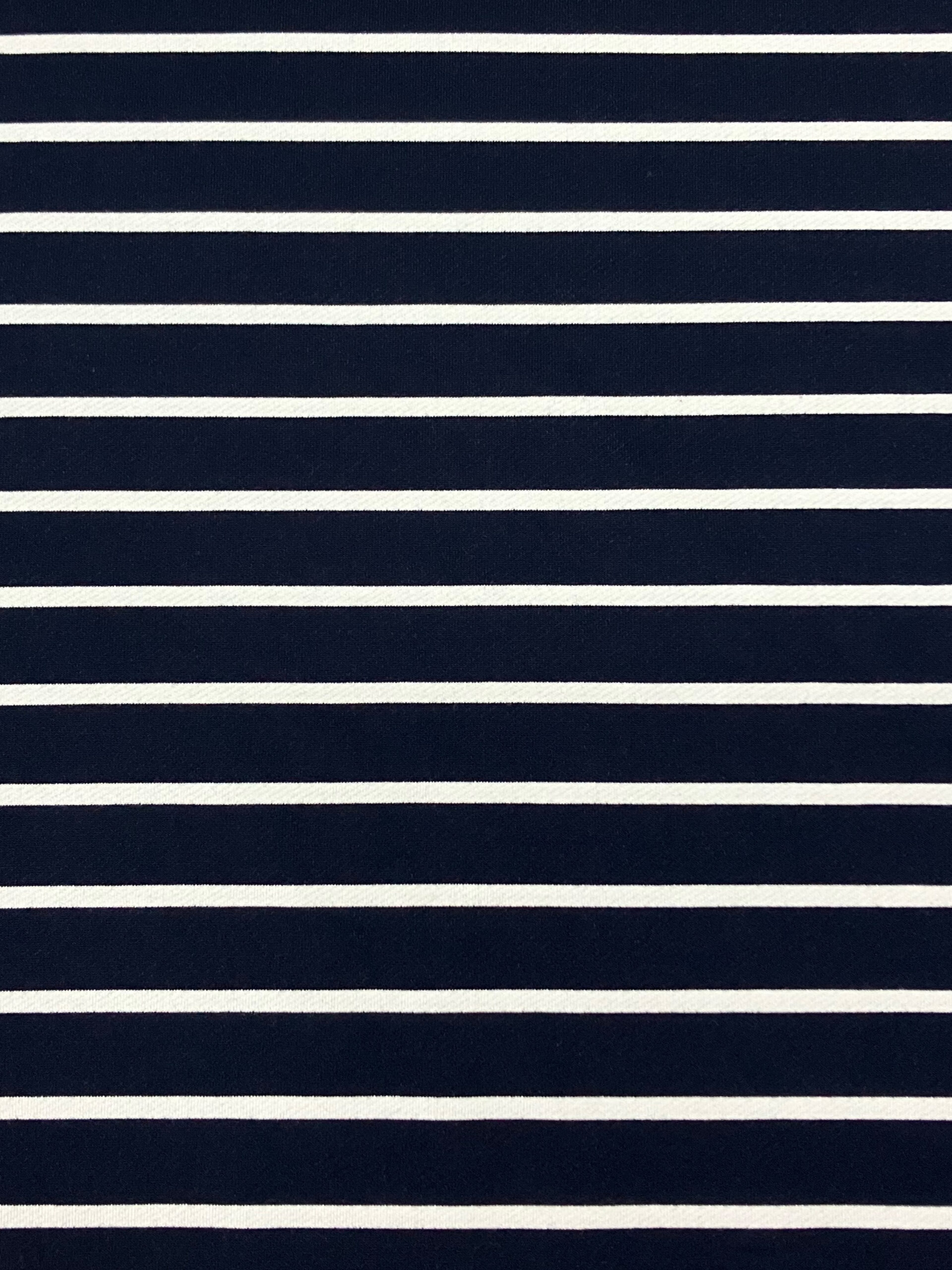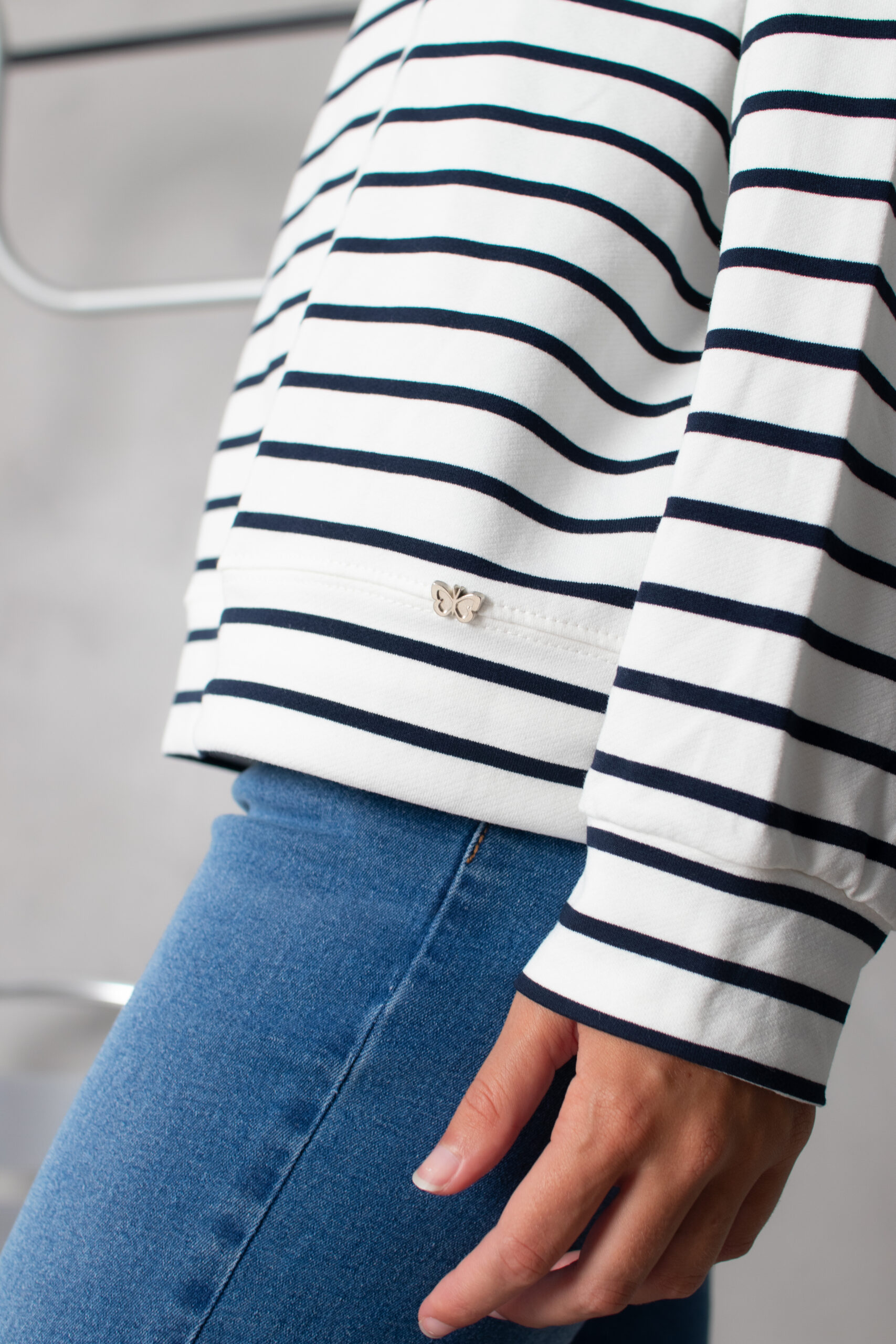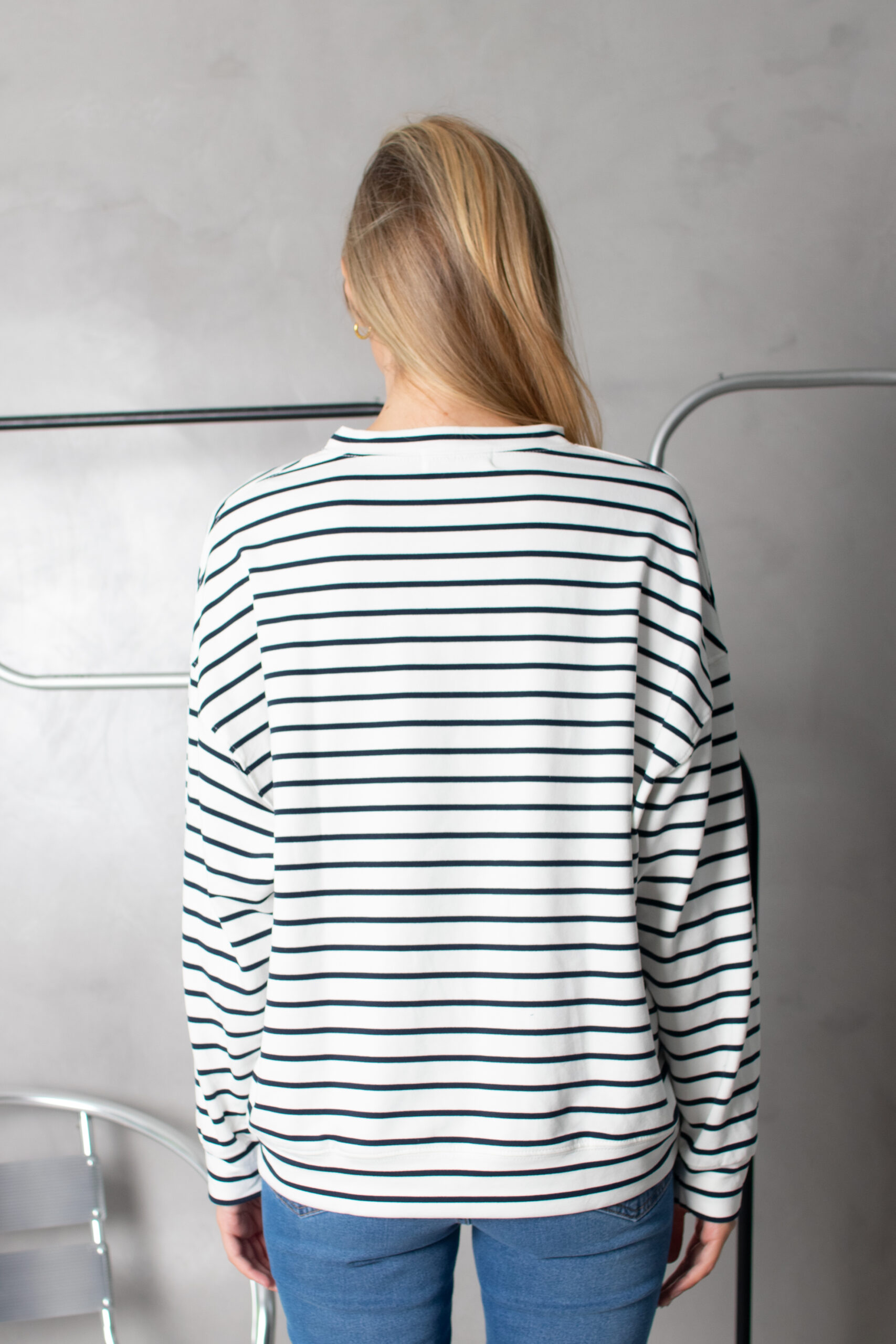 Buzo ancho de rustico rayado con cuello redondo y mangas anchas.