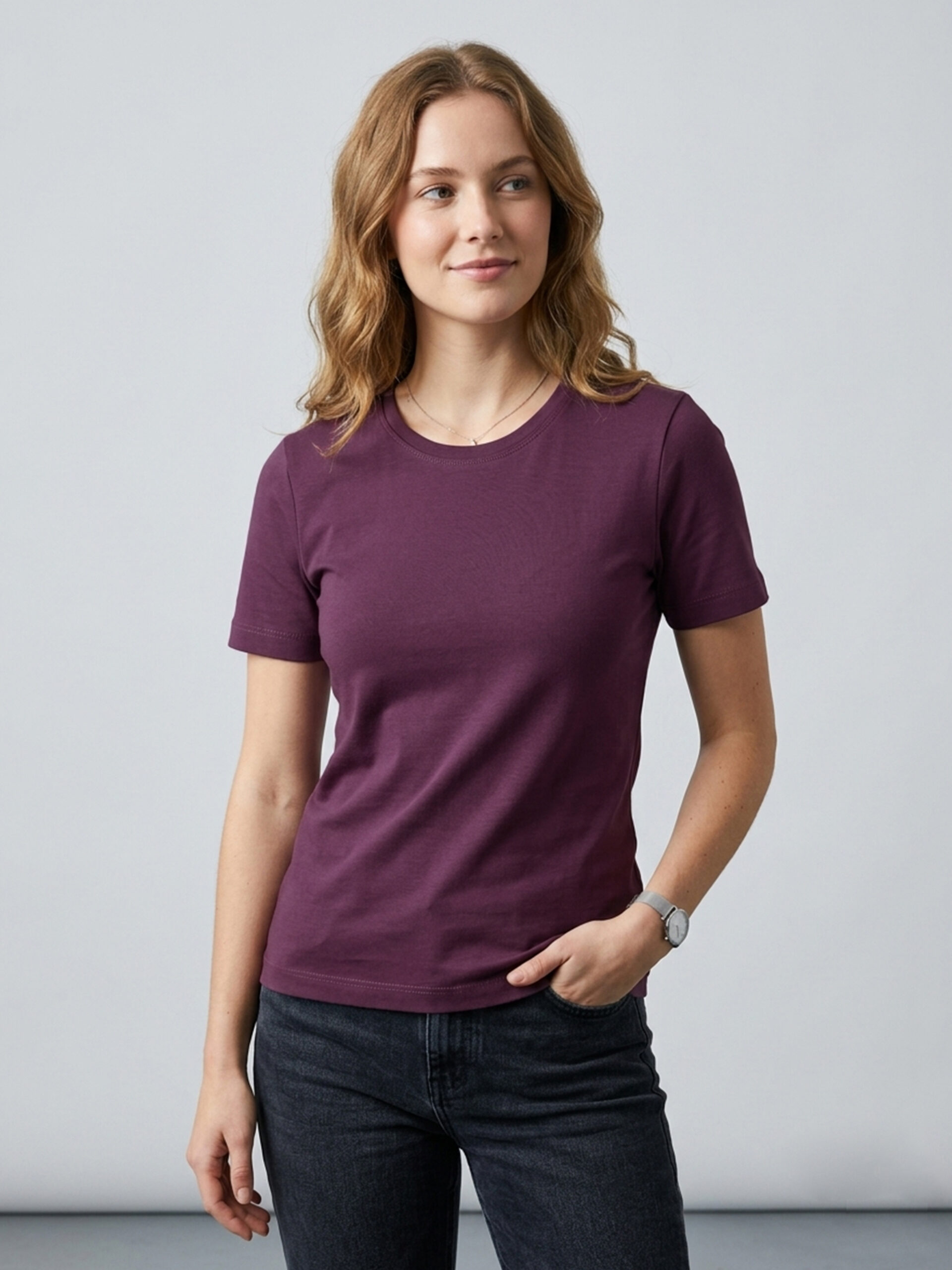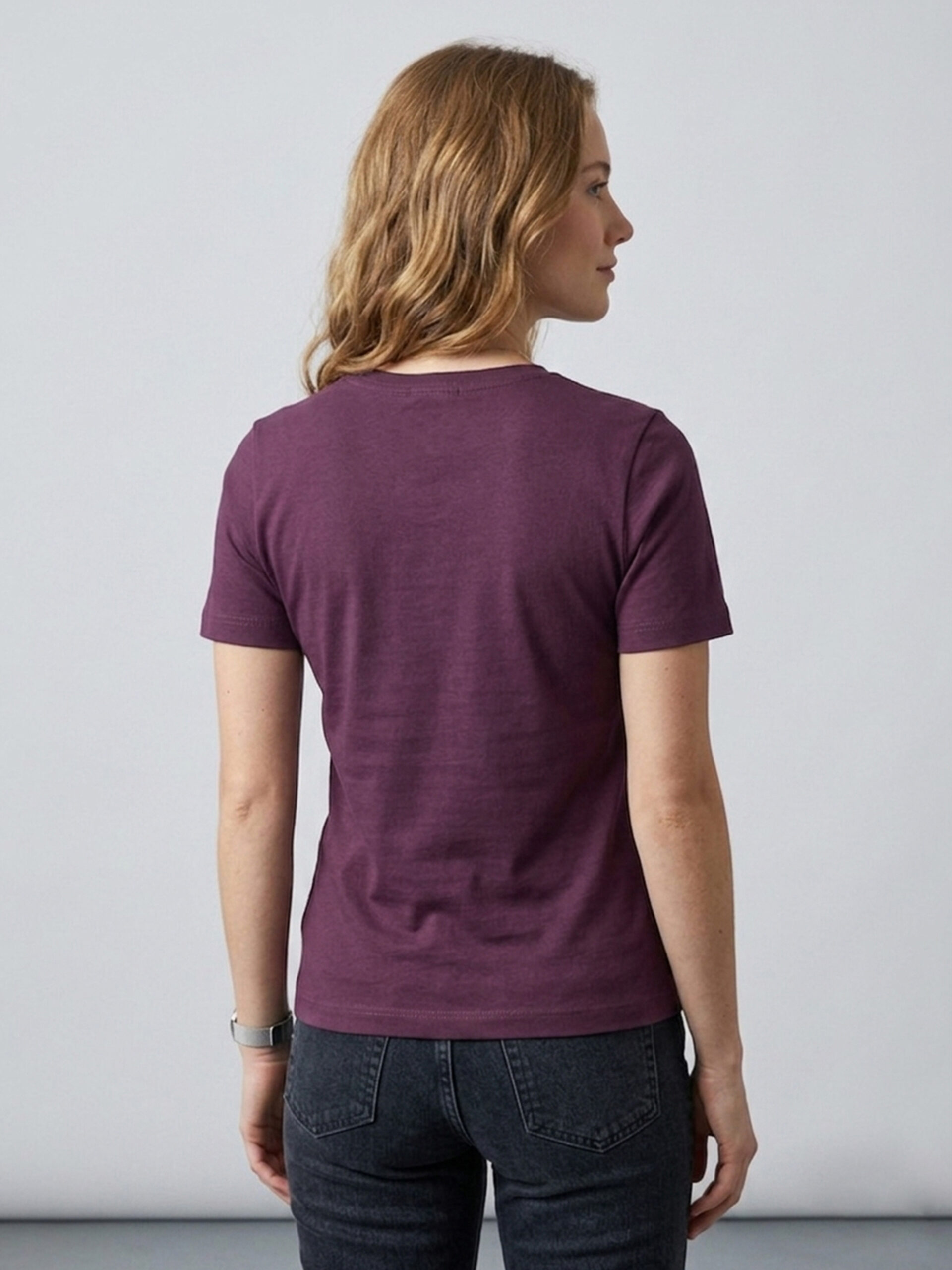 Remera básica manga corta con cuello redondo y bajo recto.