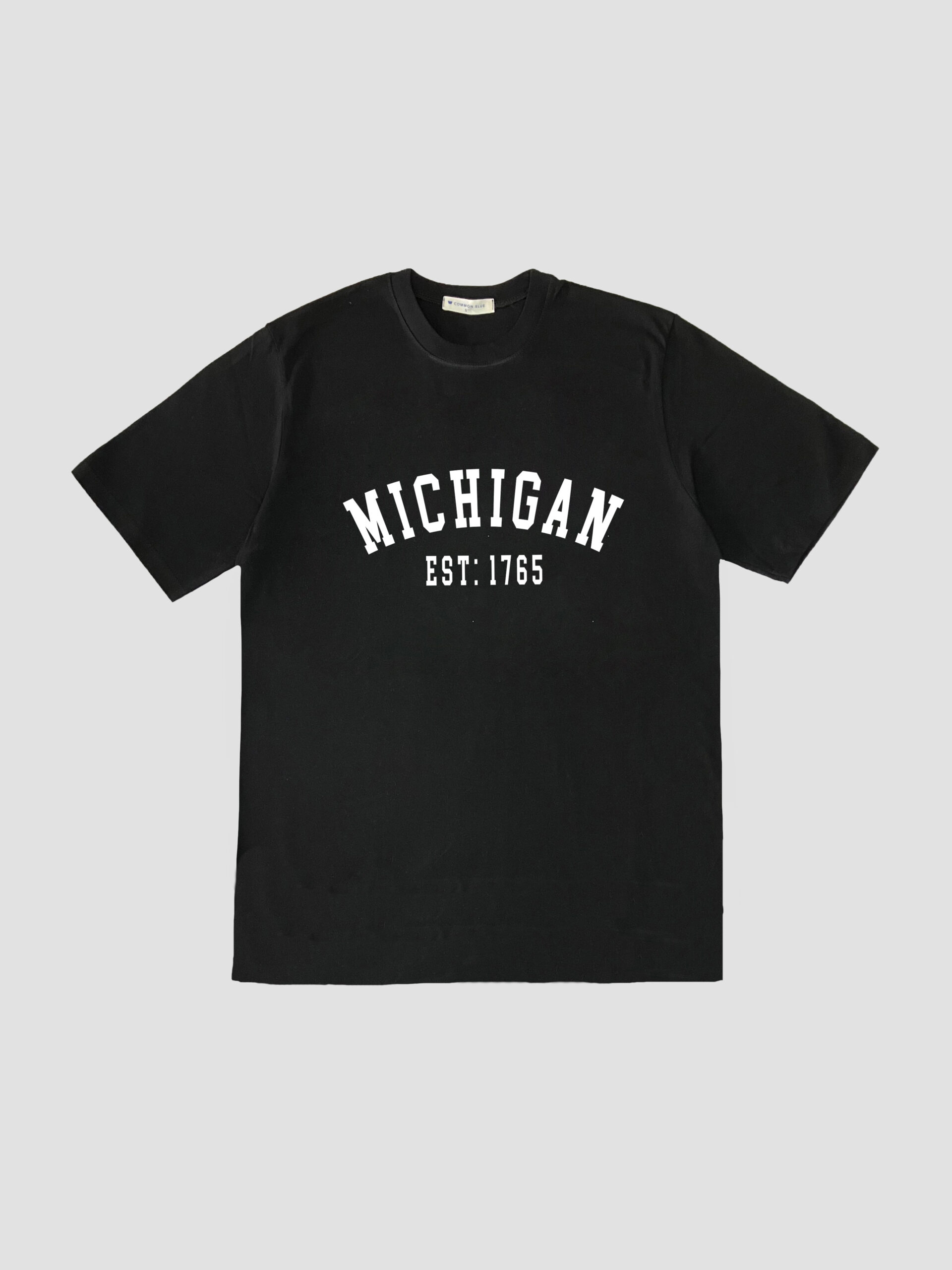 Remera holgada con cuello redondo en ribb y bajo recto. Detalle de estampa en el delantero.