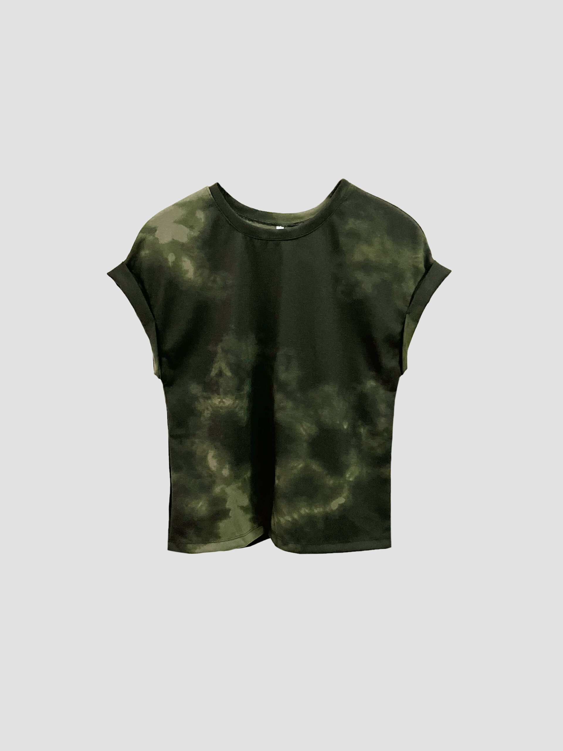 Remera de mangas cortas con borde vuelto cosido. Modelo de hombro caído y bajo recto.