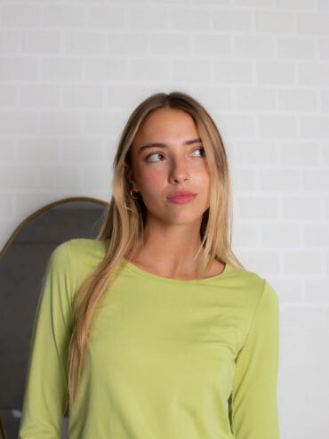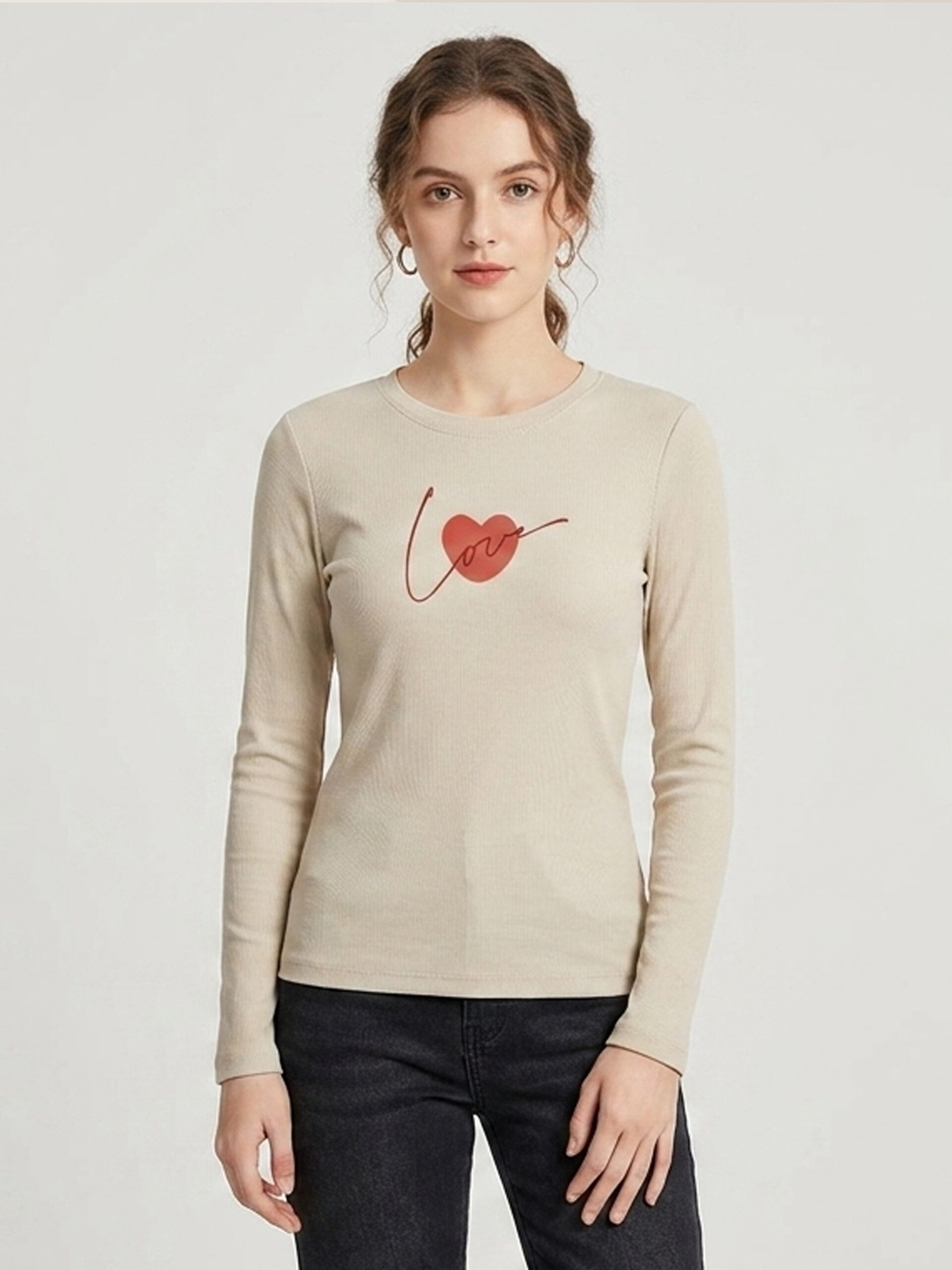 Remera básica manga larga con cuello redondo y bajo recto. Detalle de estampa en el delantero.