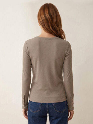 Remera básica manga larga con cuello redondo y bajo recto.