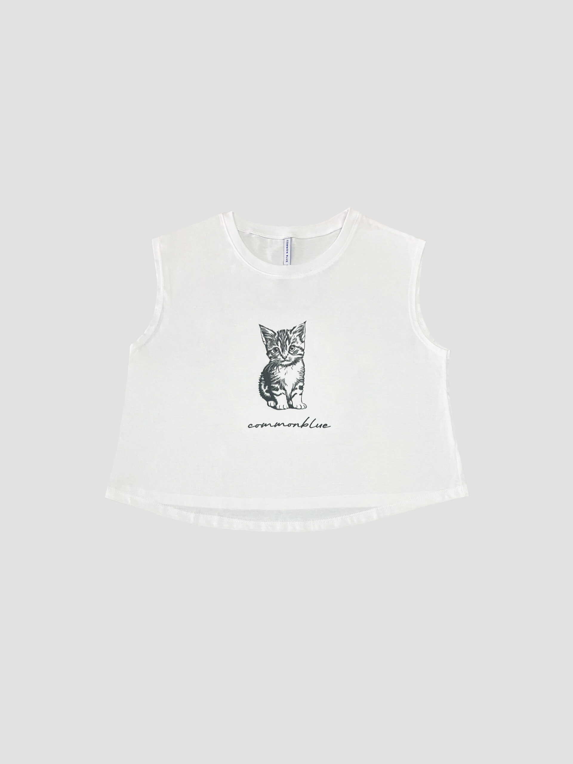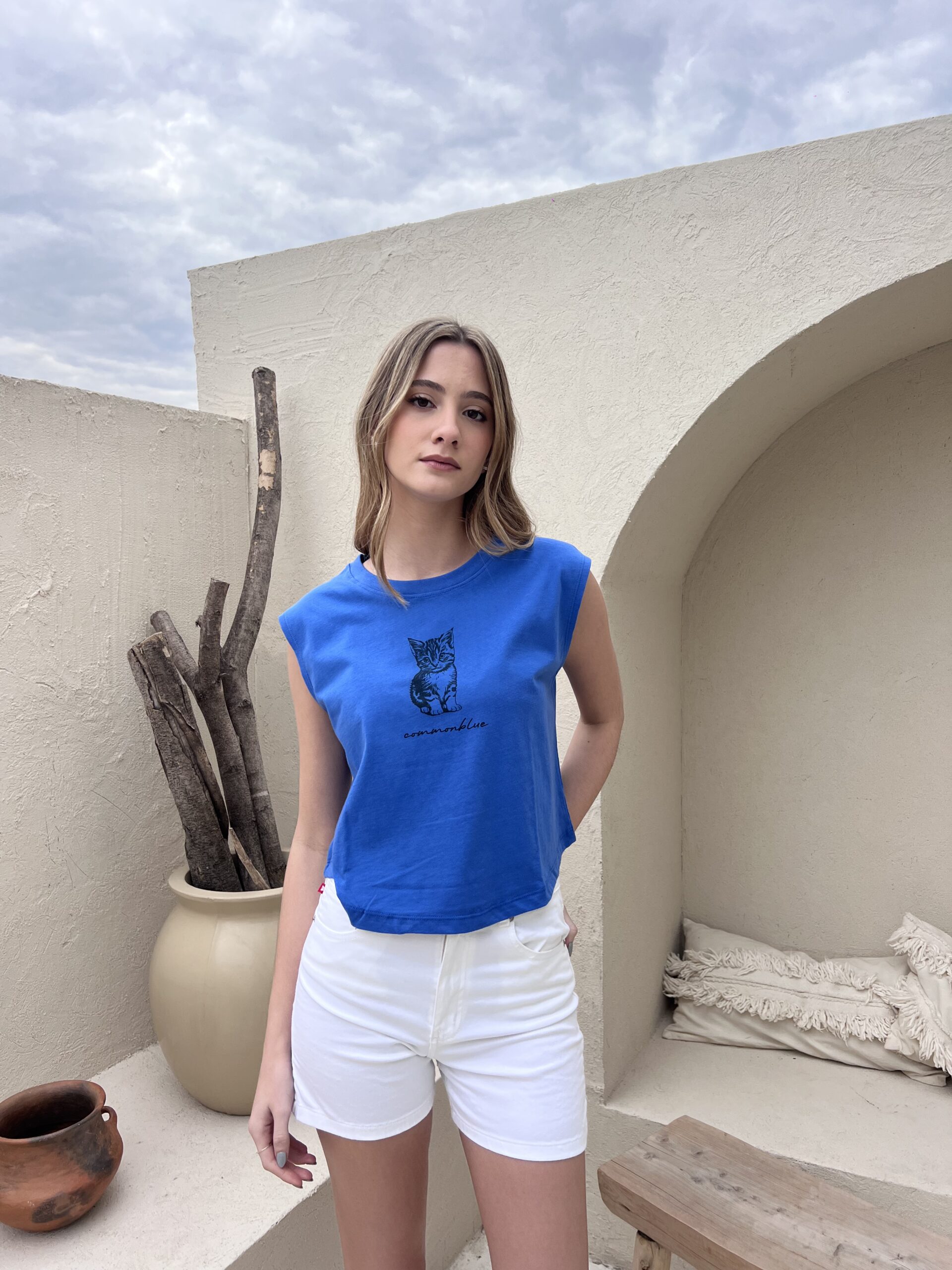 Musculosa ancha con cuello redondo en ribb y bajo redondeado. Detalle de estampa en el delantero.