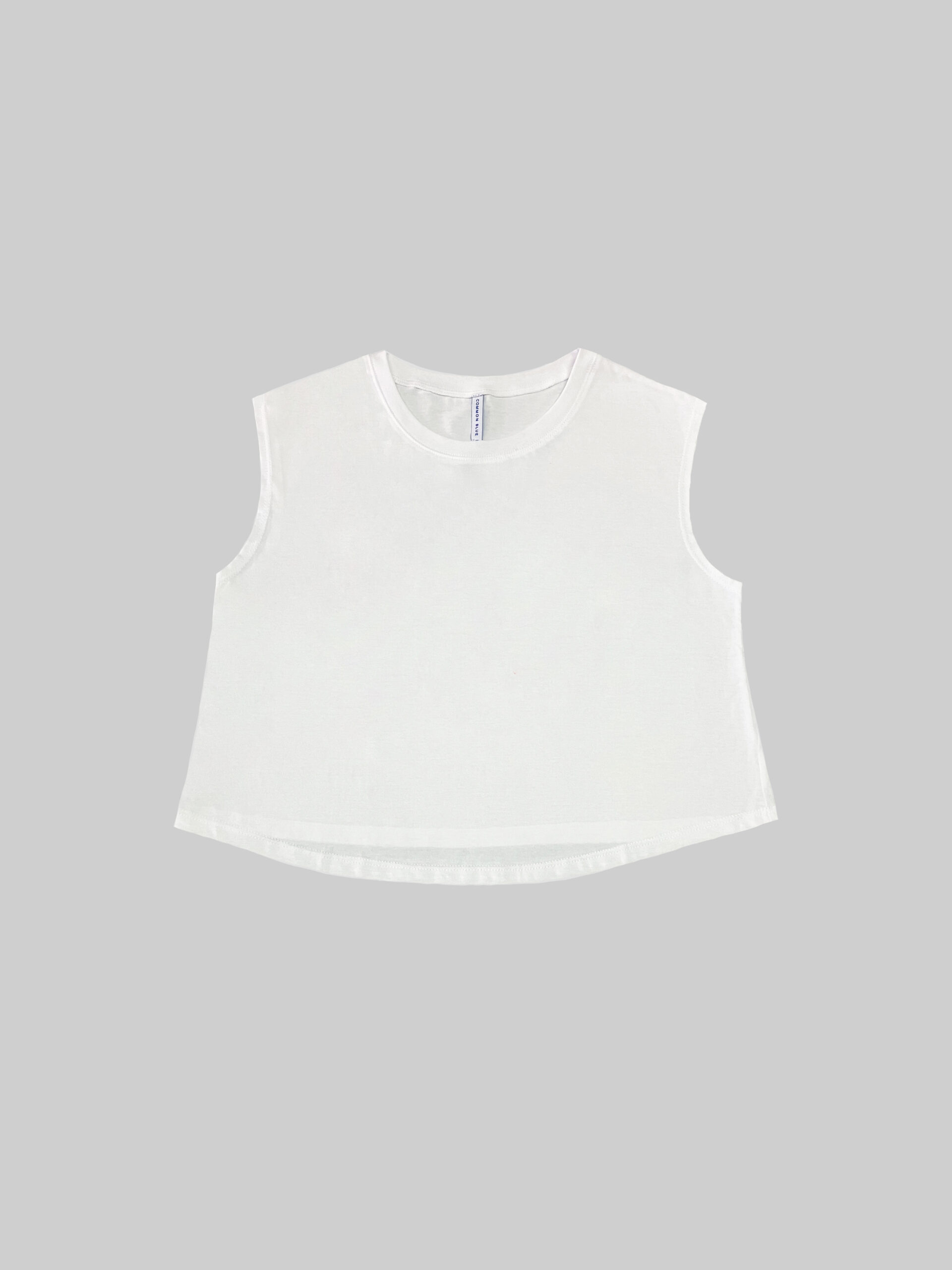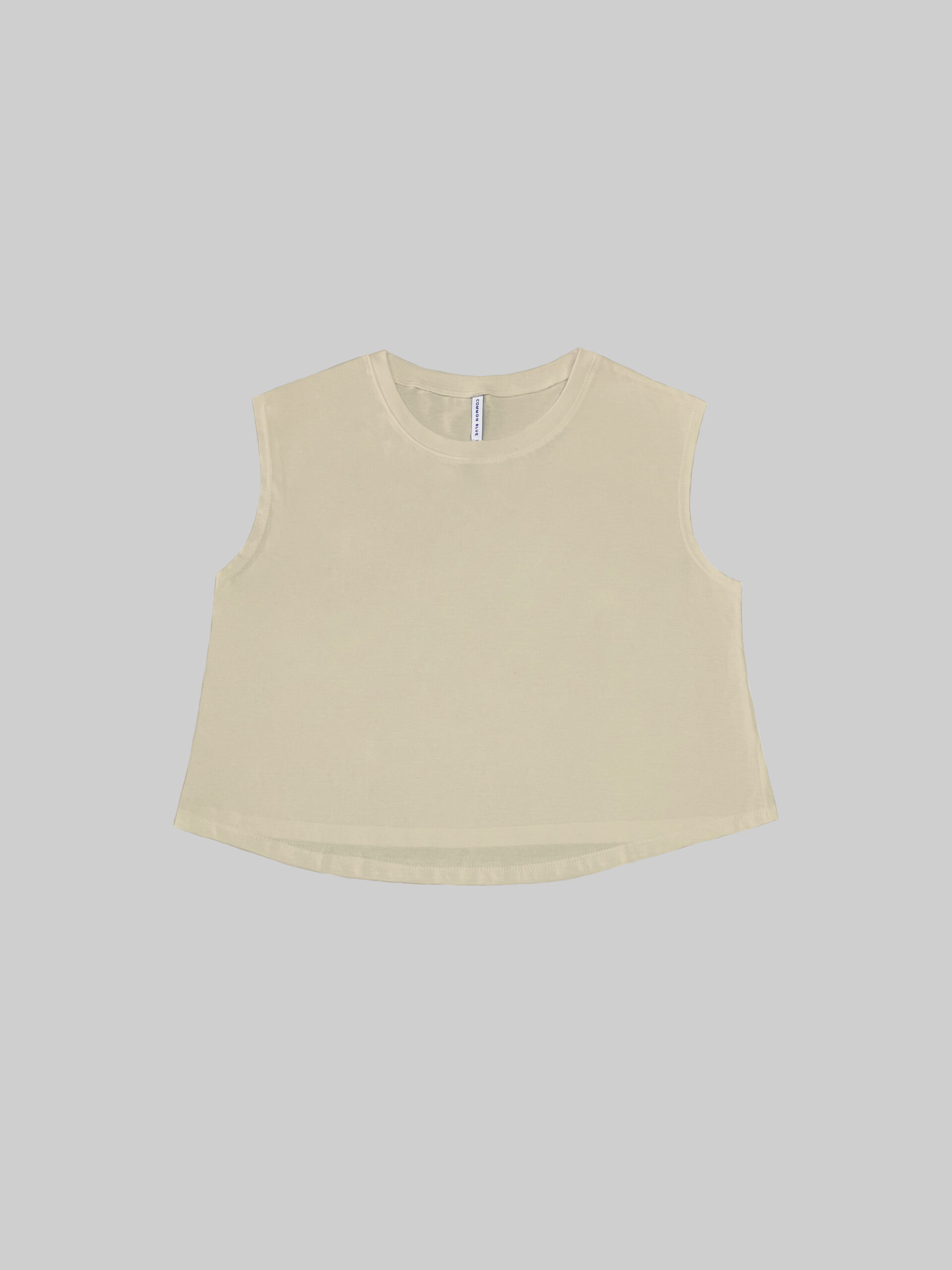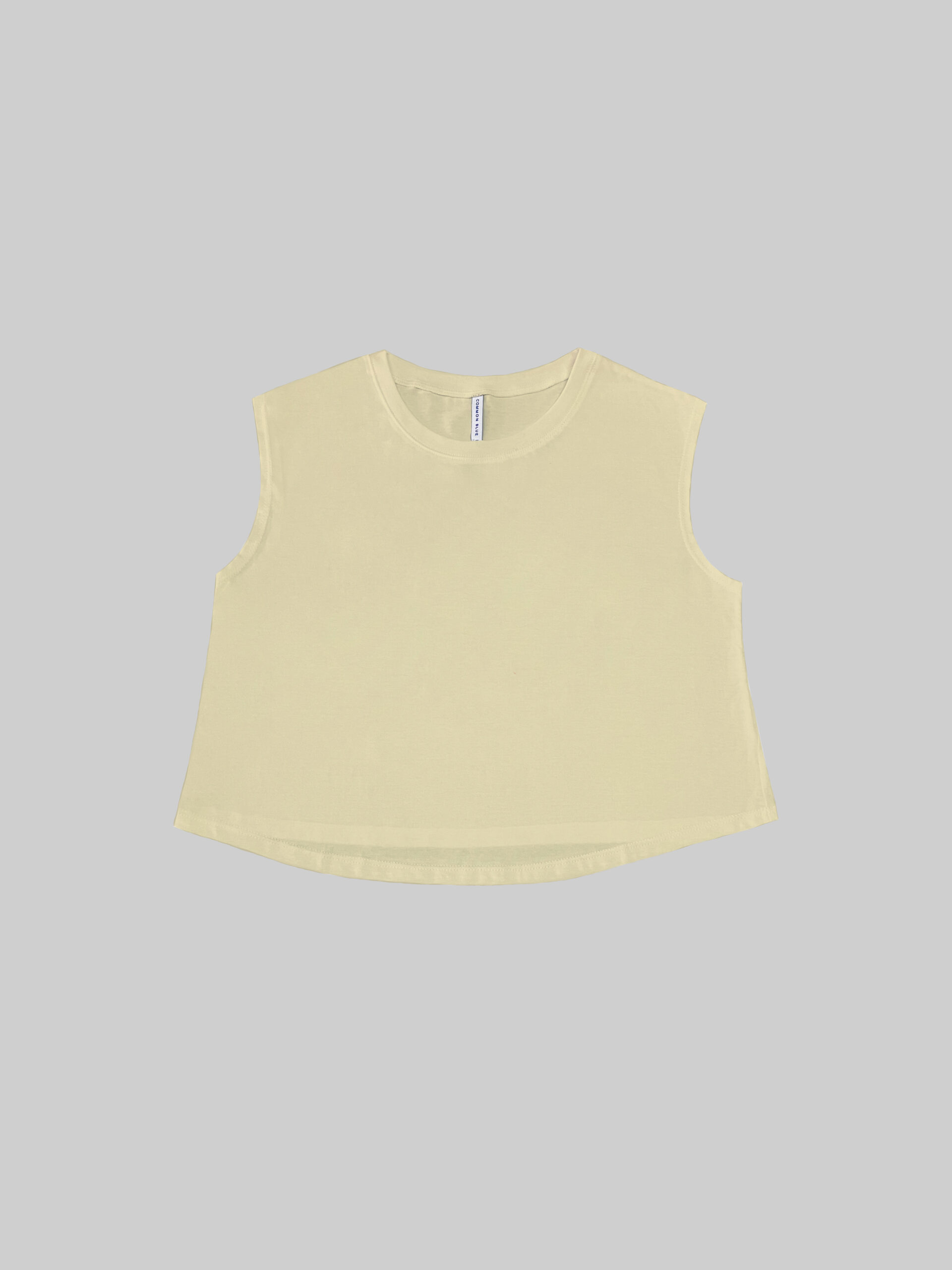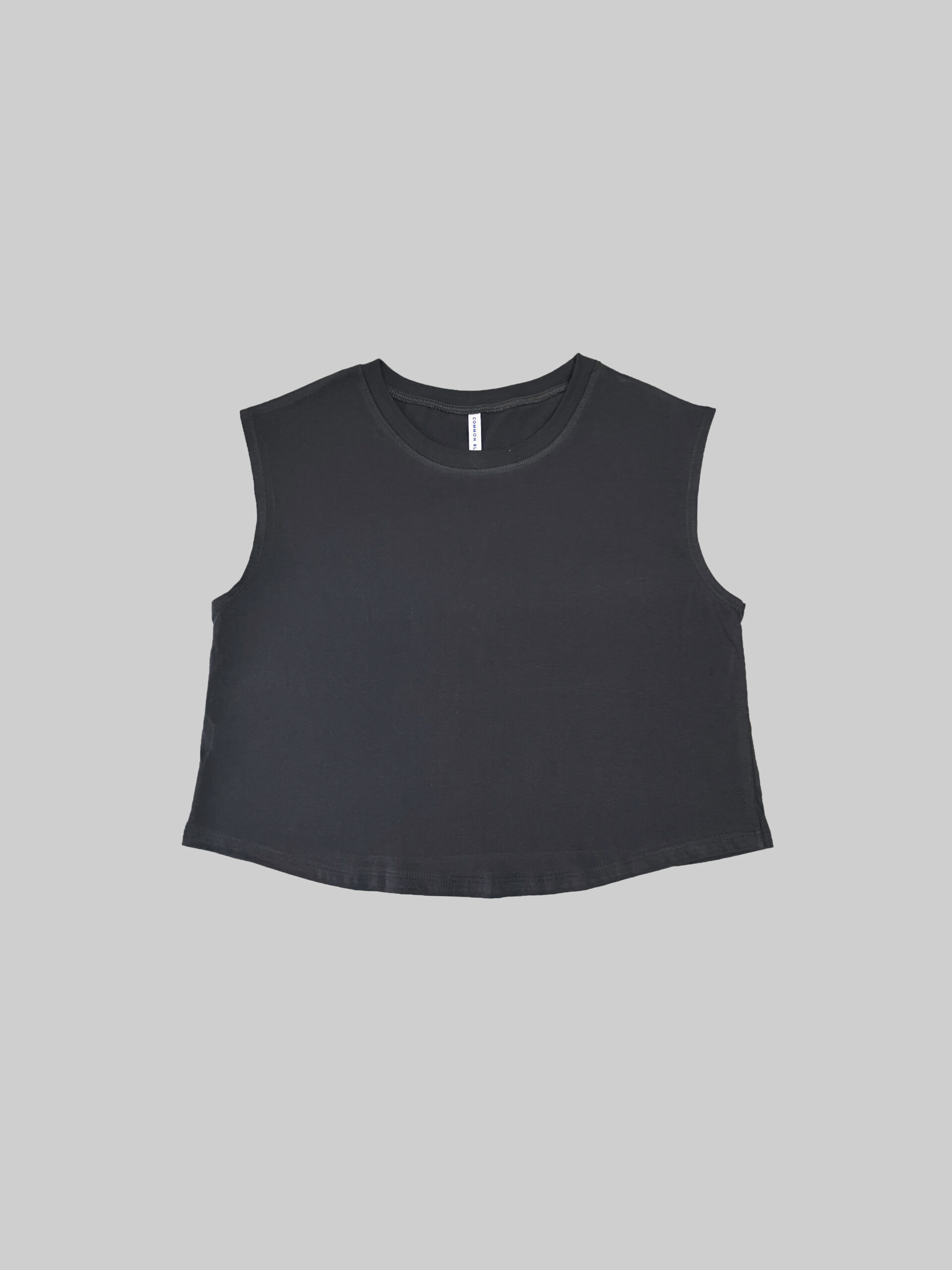 Musculosa ancha con cuello redondo en ribb y bajo redondeado.