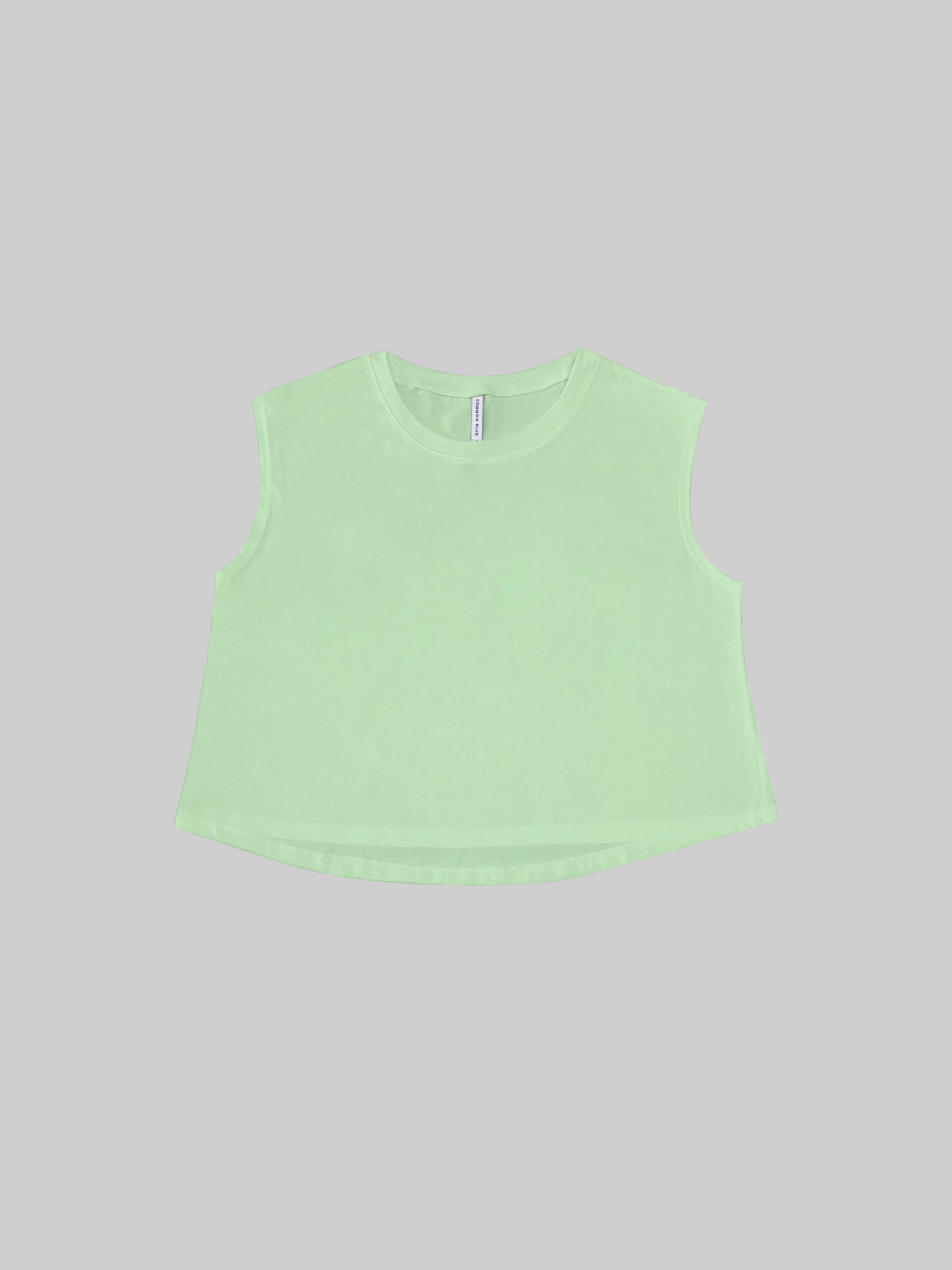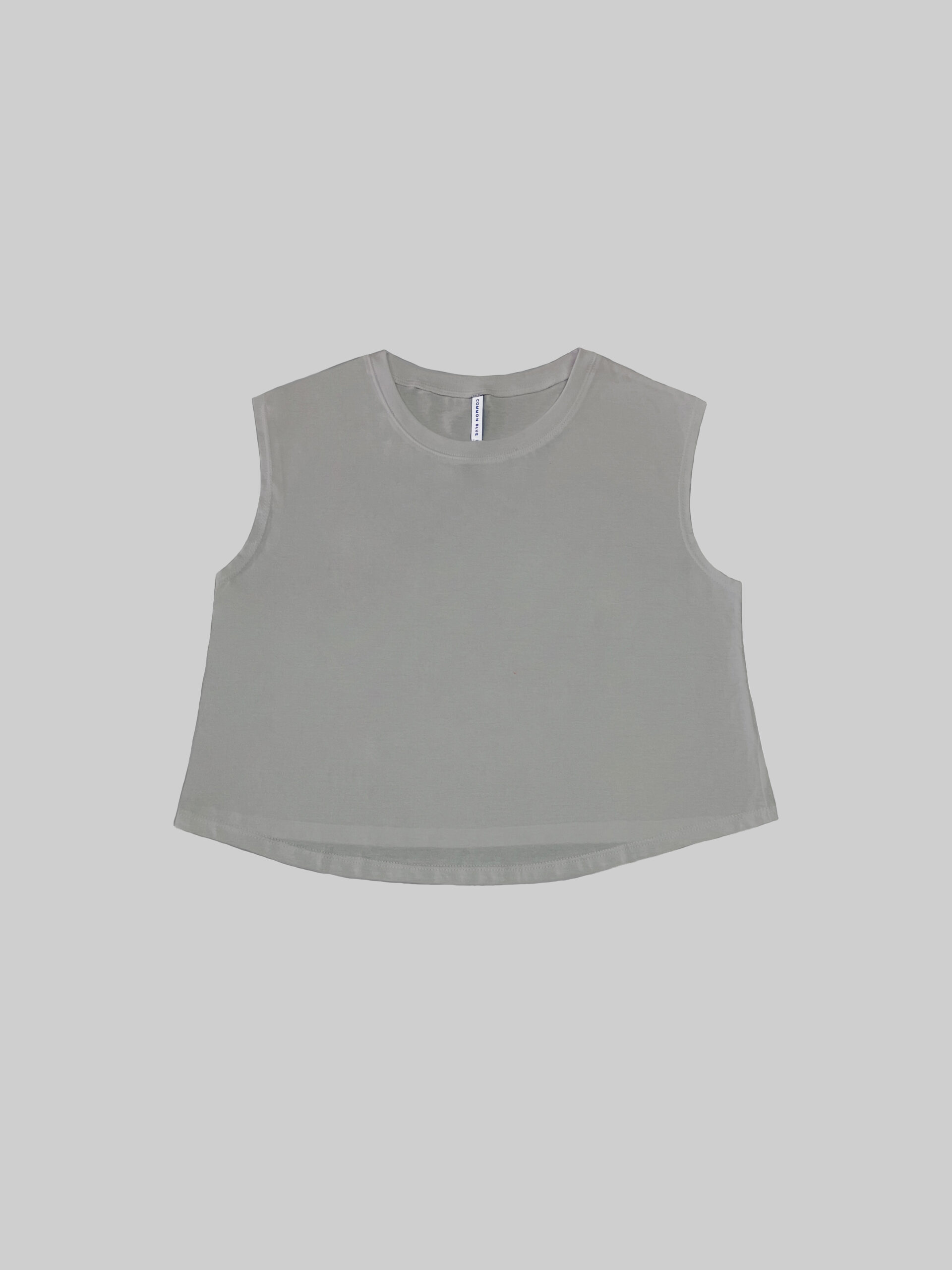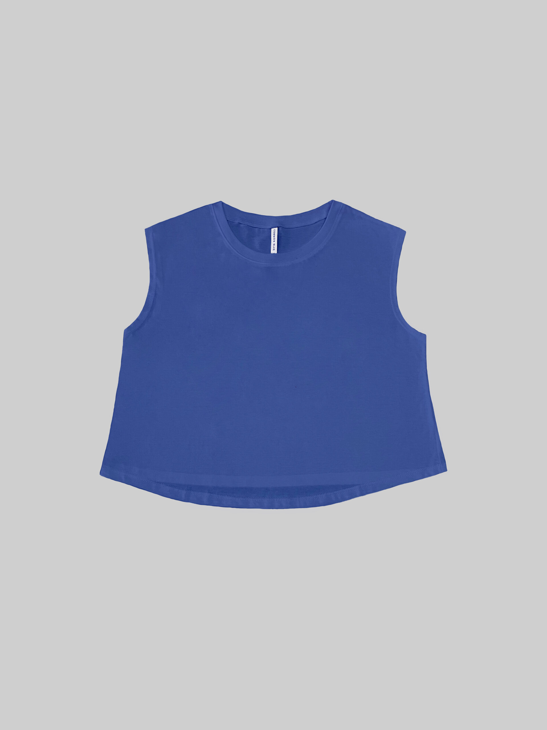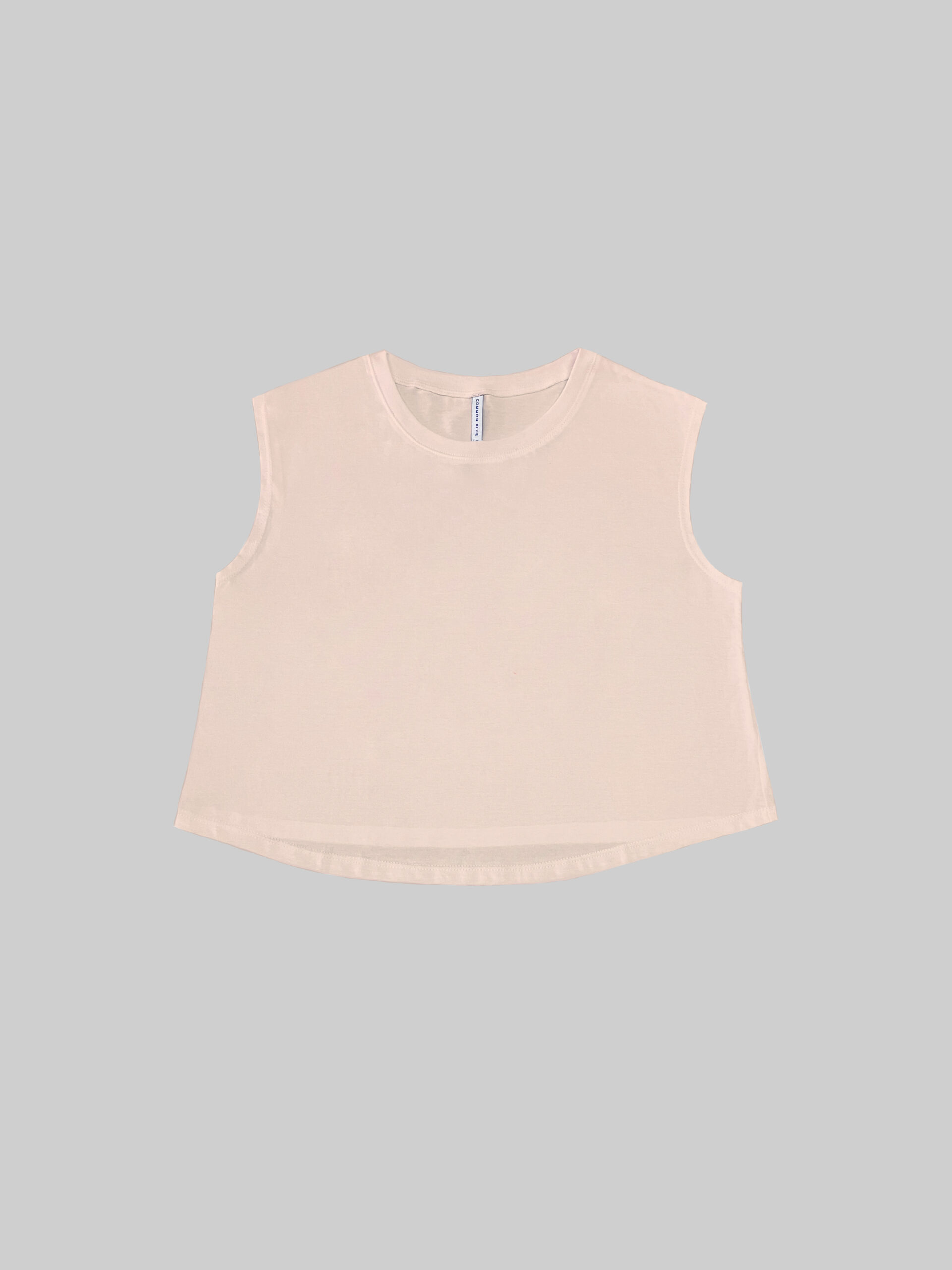 Musculosa ancha con cuello redondo en ribb y bajo redondeado.