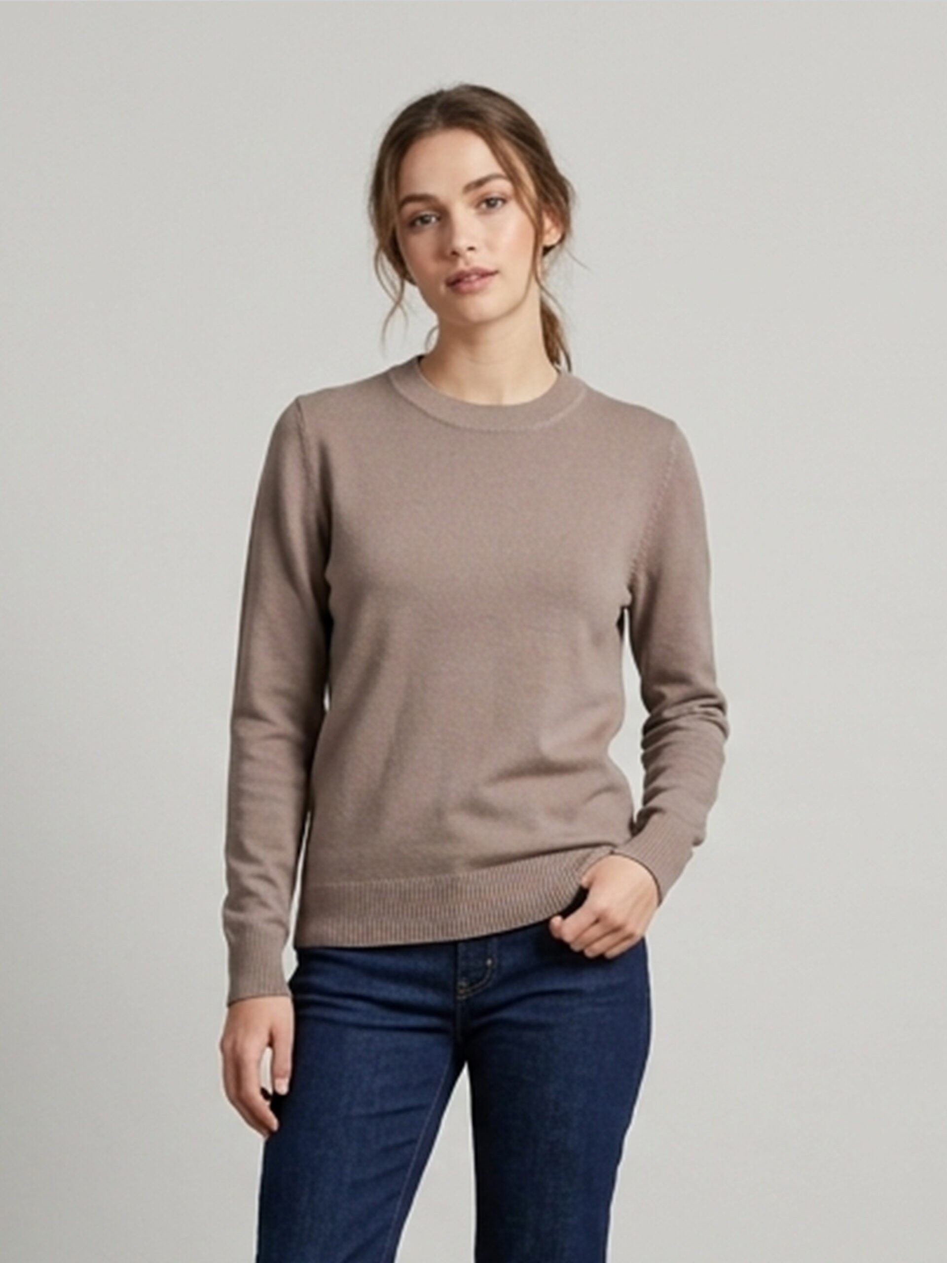 Suéter liso liviano con cuello redondo, mangas largas y bajo recto.