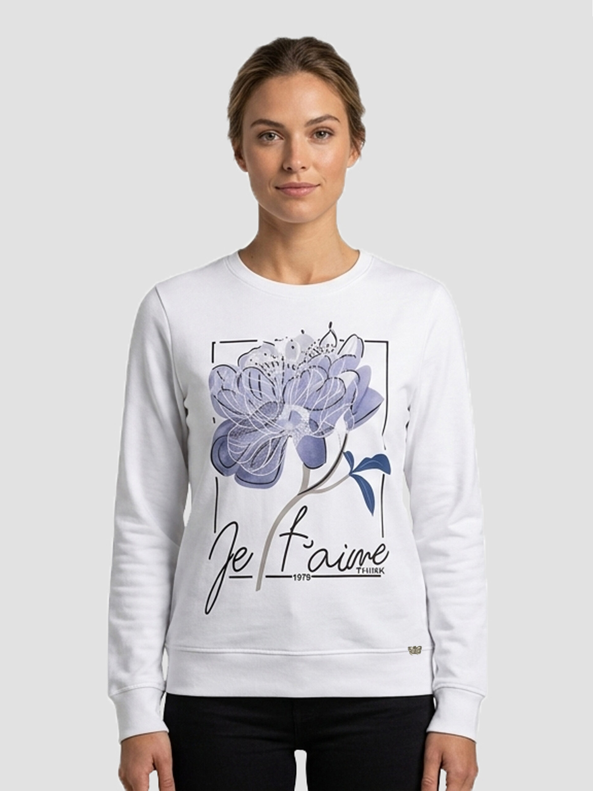 Remera manga larga con cuello redondo, puños y cintura. Detalle de estampa en el delantero.