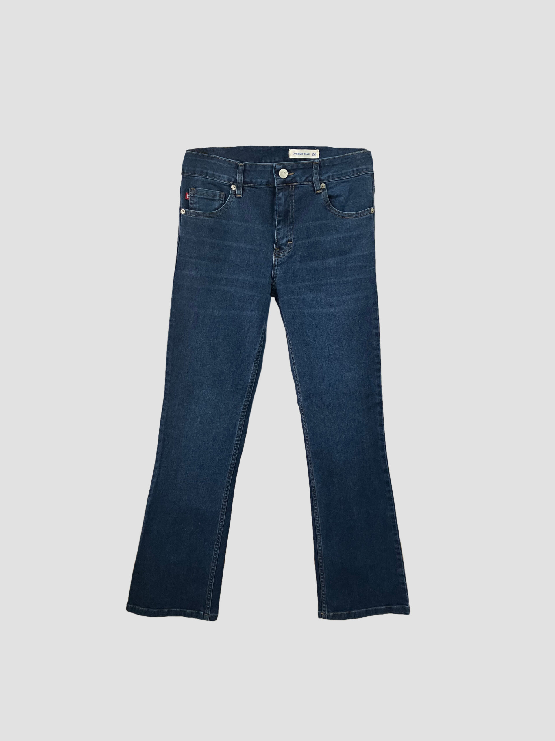 Jean semioxford tiro medio con cinco bolsillos, cierre frontal y botón metálico. Lavado Stone elastizado.