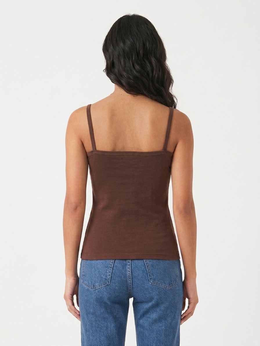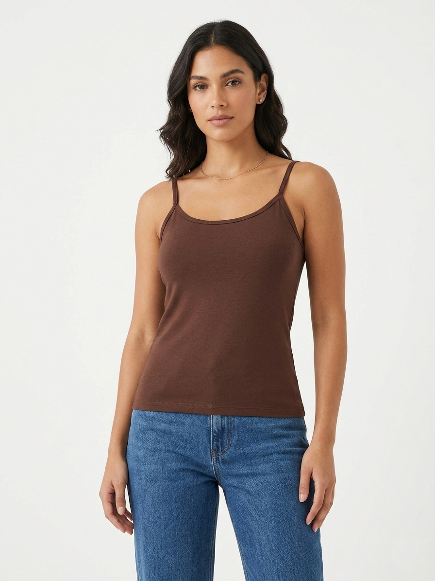 Musculosa entallada con bretel fino, cuello redondo y espalda recta.