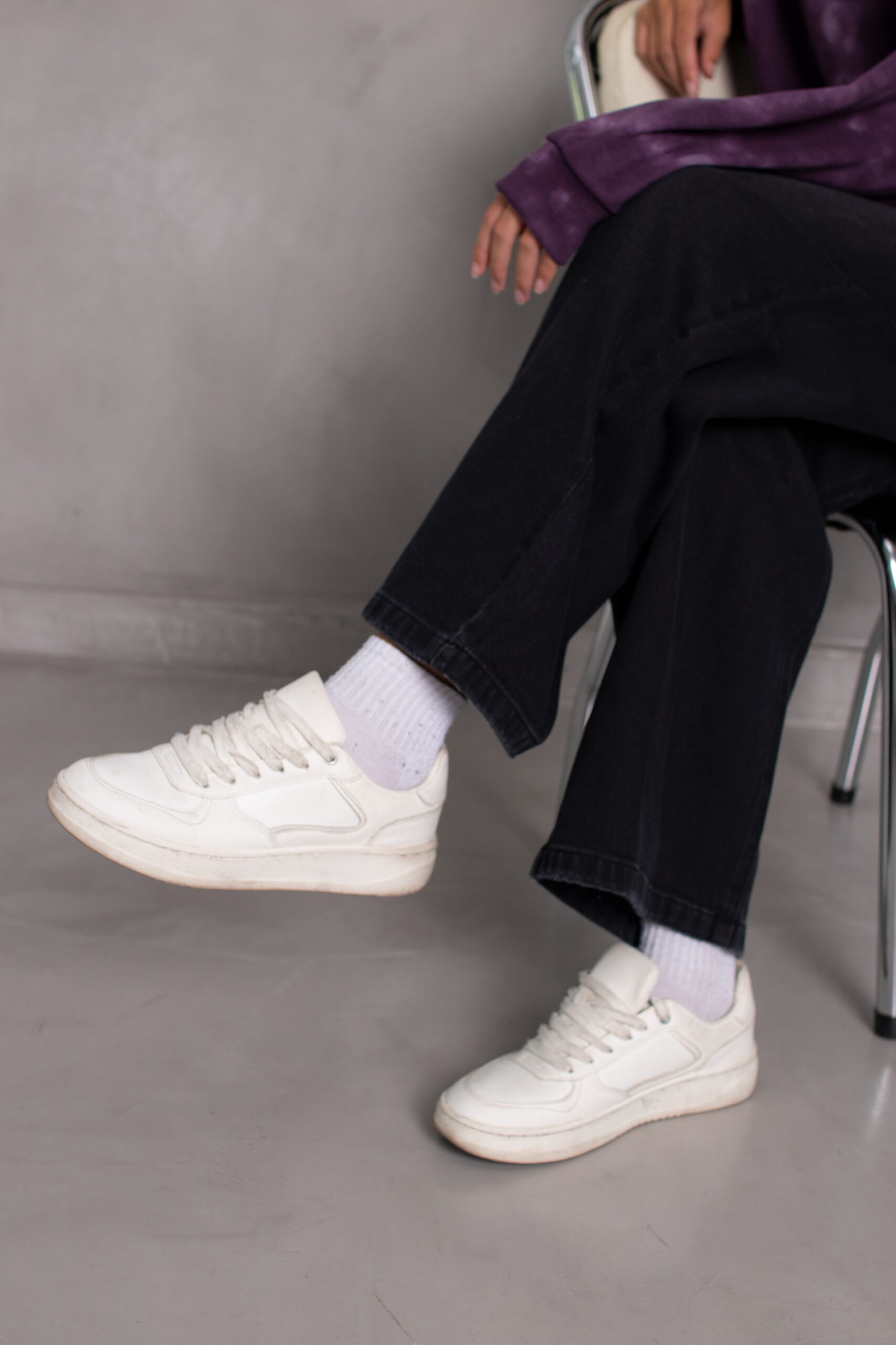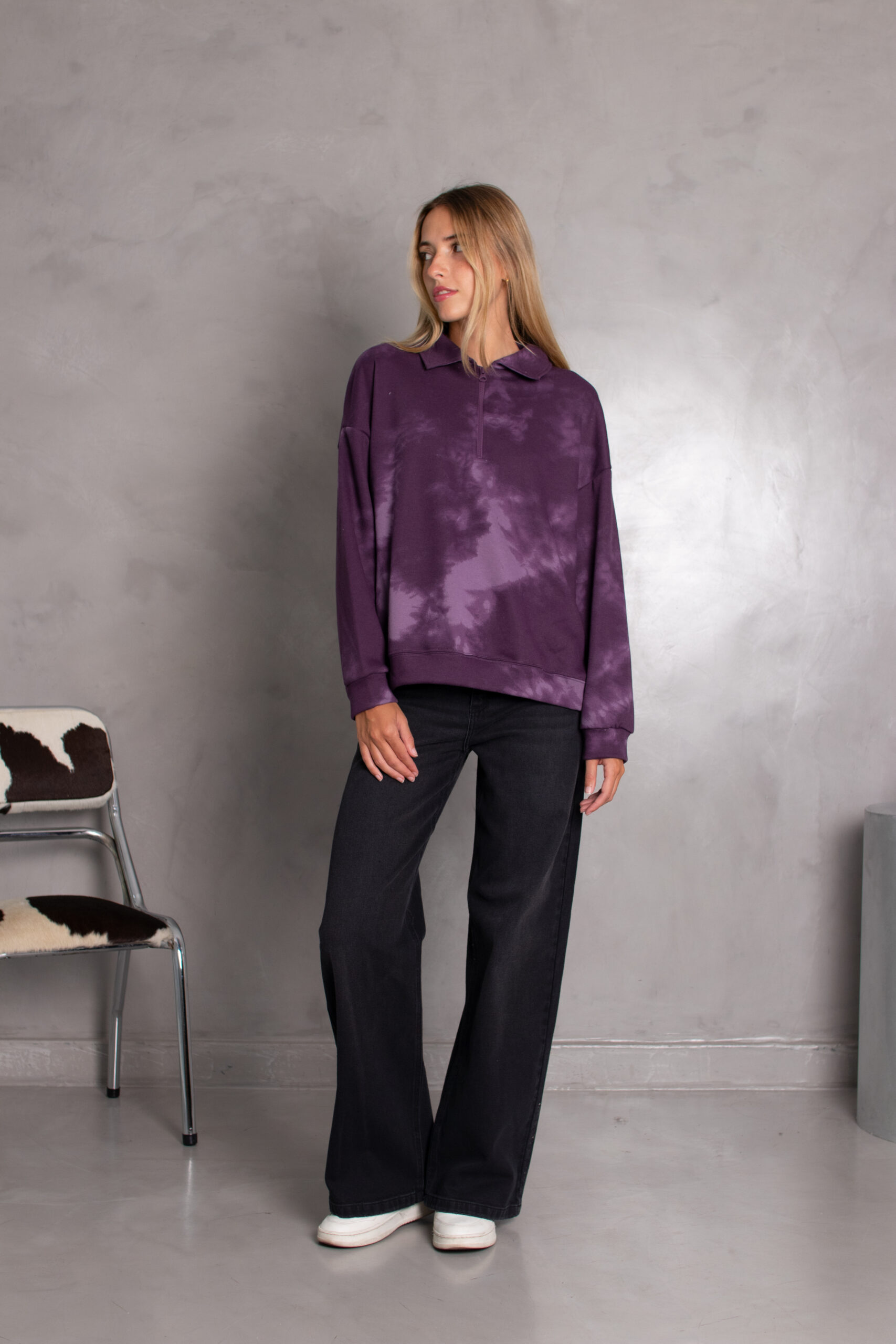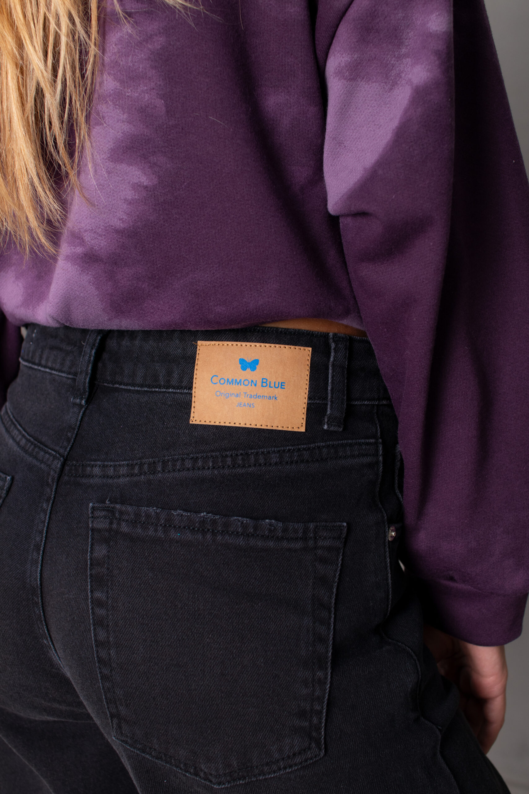 Jean recto tiro alto con cinco bolsillos, cierre frontal y botón metálico.