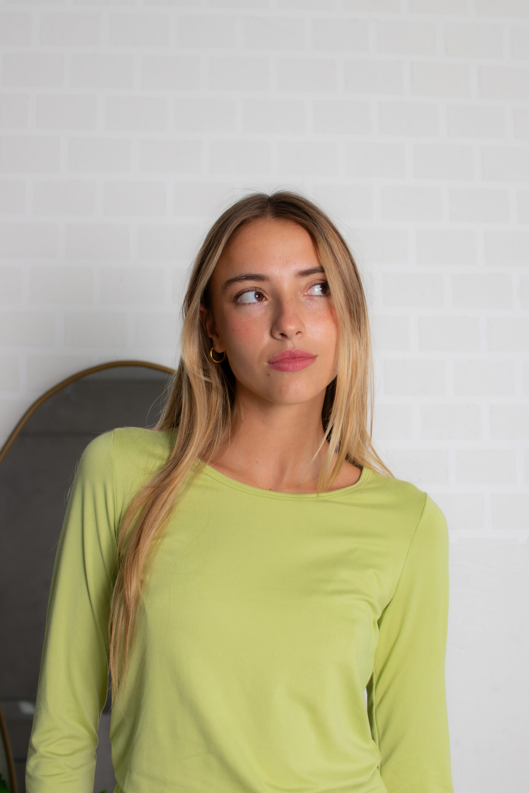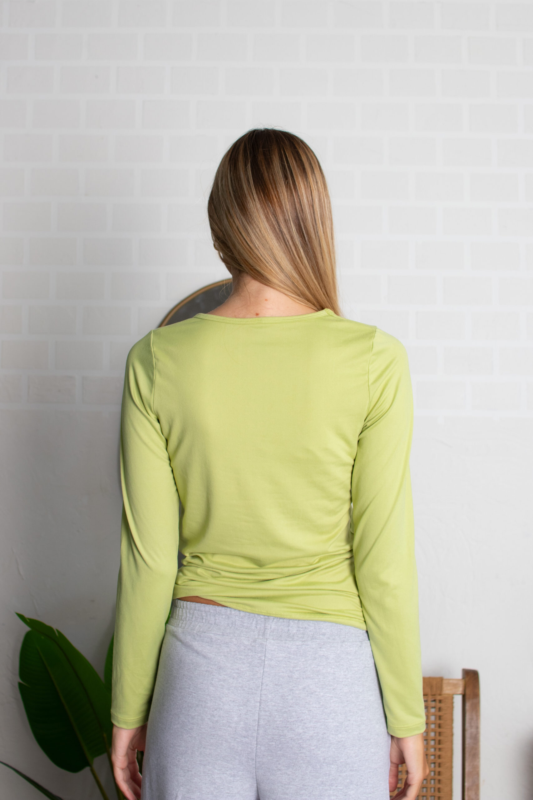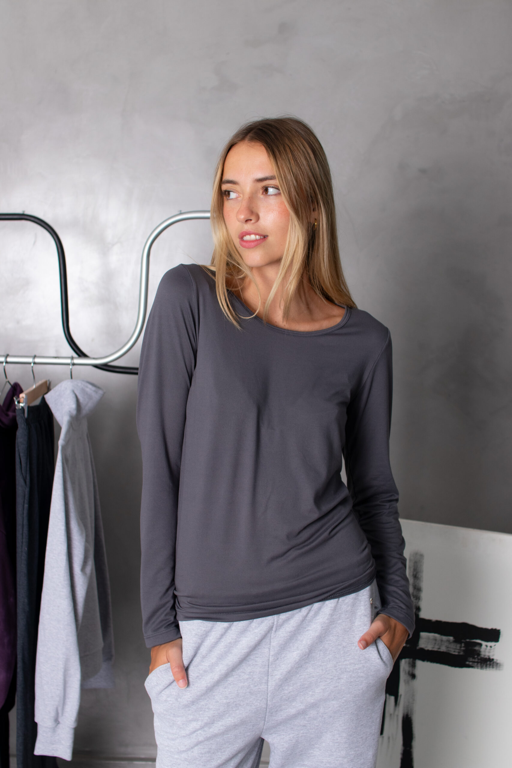 Remera básica térmica, manga larga con cuello redondo y bajo recto.